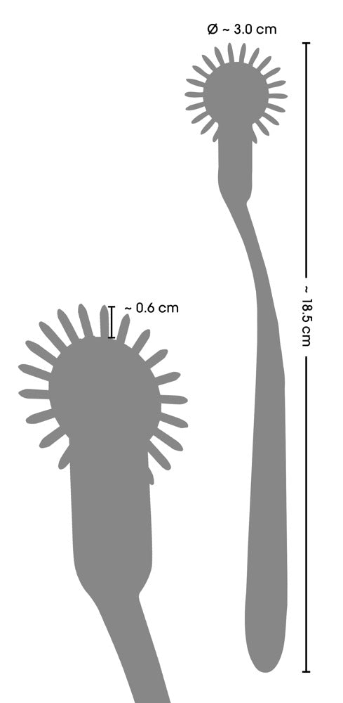 Ein hochwertiges Nervenrad in Regenbogenfarbenen Messing. Liegt perfekt in der Hand, um auch den richtigen Druck auszuüben. Besetzt mit feinen Nadeln, ideal für eine interessante Stimulation der Haut oder den lustvollen Schmerz.